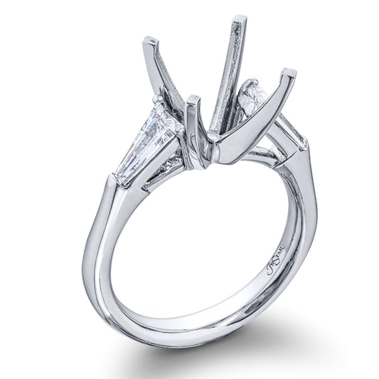 Engagement Ring Oval Cut GIA Certified Diamond Center and Two Tapered Baguettes