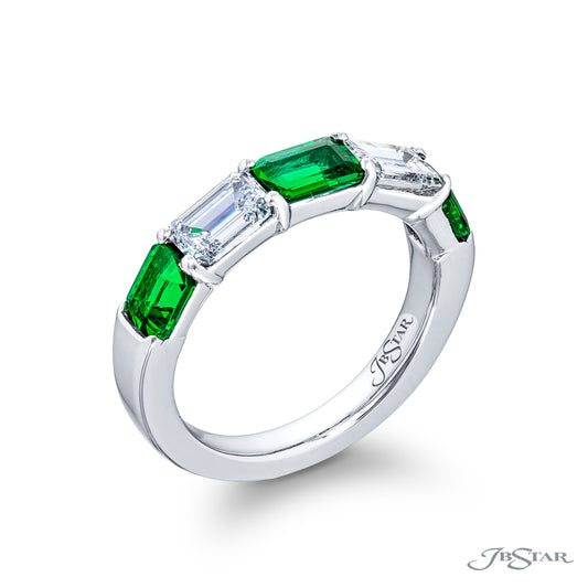 Emerald and Emerald Cut Diamond Wedding Band