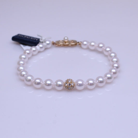 Akoya Pearl Bracelet with 1 Pave Sphere Roundel