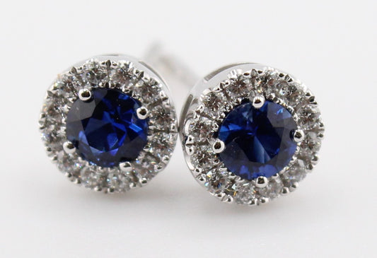 Blue Sapphire and Diamond Halo Stud Earrings