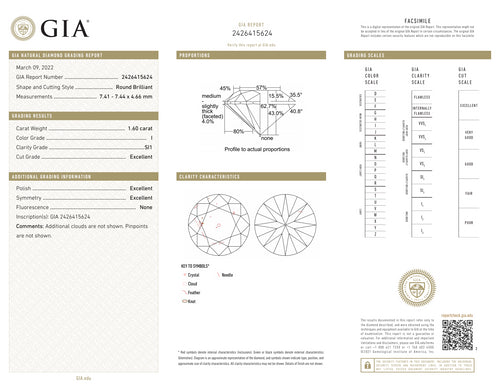 1.60CT BRILLIANT I-SI1 GIA EX / EX / EX