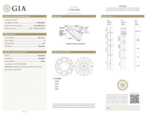3.02CT BRILLIANT E-SI2 GIA EX / EX / EX