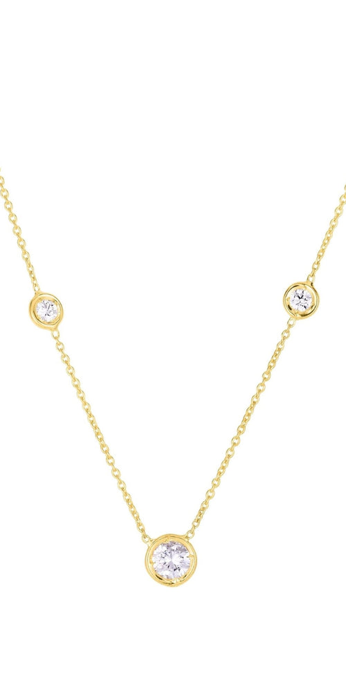 18K Yellow Gold with Three Diamonds=0.38 CTTW, G-H Color, SI Clarity, Bezel Set, 17 Inches