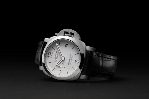 CASE: Brushed Steel, Diameter 40MM; MOVEMENT: Automatic Mechanical P.900 72 HRS Power Reserve; DIAL: White Dial; STRAP: Alligator Semi-mat Black, Oyster-Glove Black; EXTRAS: Small Seconds, Date Display