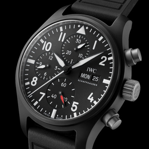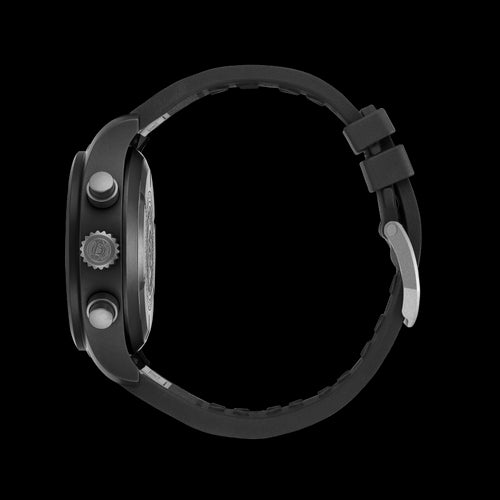 CASE: Ceramic, Diameter 41.9MM; MOVEMENT: 69380 Calibre, Automatic, 46 Hour Power Reserve; DIAL: Black with Luminescence; STRAP: Black Rubber Strap with EasX-CHANGE System; EXTRAS: Day and Date Display, Soft-iron Inner Case, Chronograph Function