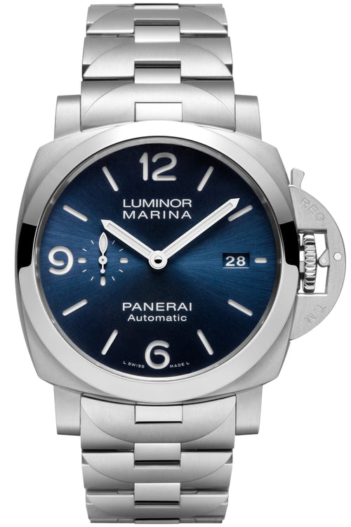 CASE: Brushed Steel, Diameter 44MM; MOVEMENT: Automatic mechanical, P.9010 Calibre, 72 HRS Power Reserve; DIAL: Blue Dial; BRACELET: Stainless Steel; EXTRAS: Small Seconds, Date Display