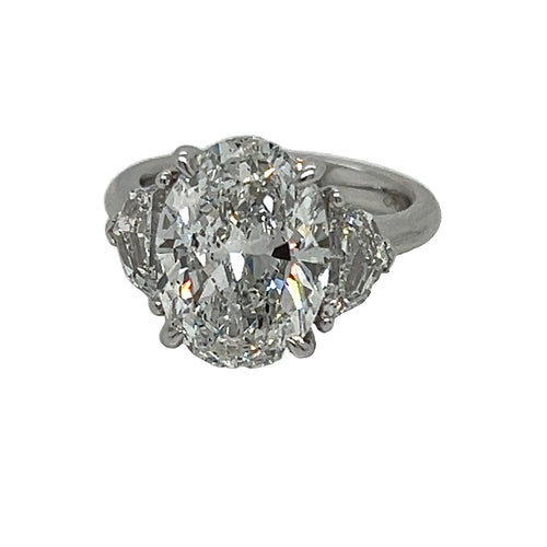 5.32 CT Oval Cut Diamond Ring with Espaulette Cut Side Stones