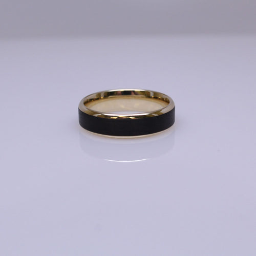 14K Yellow Gold Carbon Wedding Band, 6MM, Size 62.5