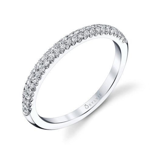 14K White Gold with Two Rows of Diamonds=0.23 CTTW, Pave Set, Size 6.5