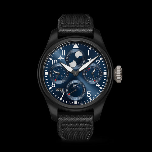 CASE: Ceramic, MOVEMENT: Automatic, DIAL: Blue, STRAP: Black Calfskin, EXTRAS: "Rodeo Drive" Edition, Perpetual Calendar, See-Through Sapphire Glass Back, Double Moon