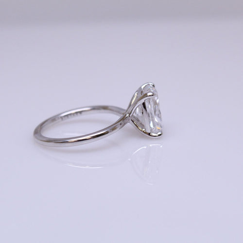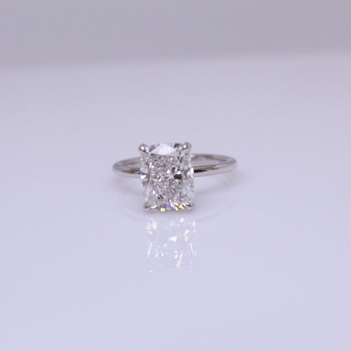 18K White Gold, with 3.85 CT Cushion Head, Size 6.5