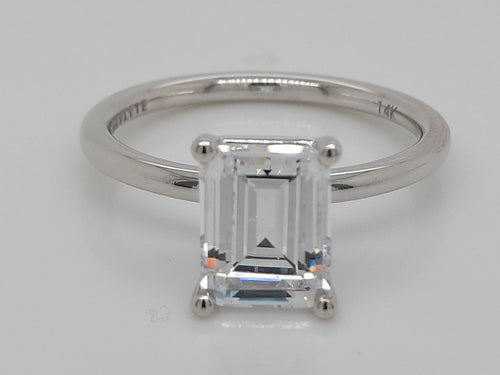 14K White Gold 4-Prong Mounting for a 2.00 CT Emerald Cut Center