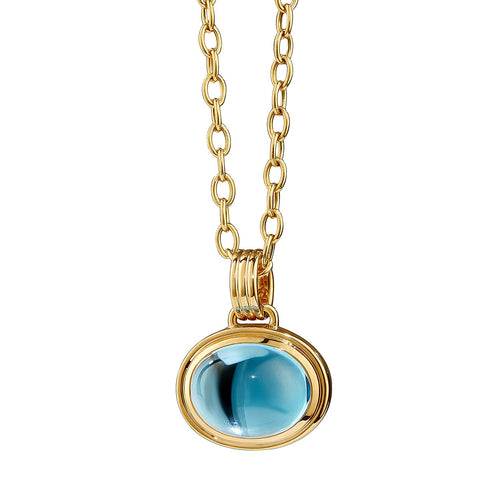 18K Yellow Gold with One Cabochon Cut Blue Topaz=7.50 CTS, 0.8" x 0.6", on a Small Link Chain=18"
