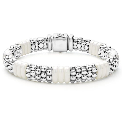 Sterling Silver and 18K Yellow Gold with White Ceramic, Width=9 MM, Double Button Box Clasp, Size Medium