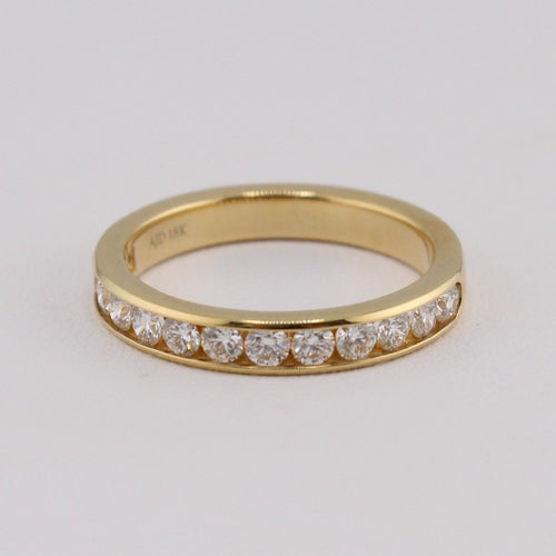 18K Yellow Gold with13 Graduated Diamonds=0.72 CTTW, G Color, VS Clarity, Fine Belgium Cut, Channel Set, Size 6.75