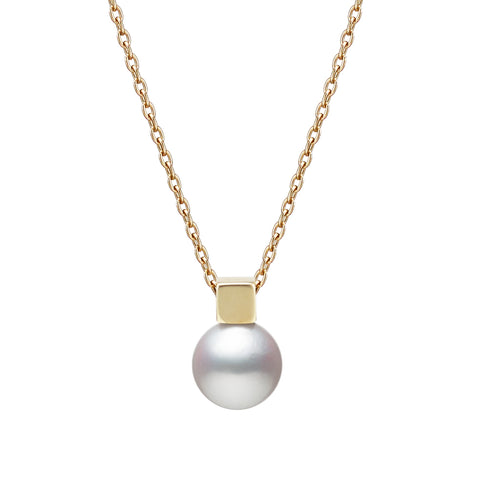 18K Yellow Gold with Akoya Cultured Pearl, 7 MM, A+ Quality and Gold Box Accent, Length=18”