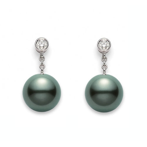 Classic Collection Diamond and Black South Sea Pearl Drop Earrings