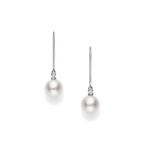 18K White Gold with 7MM Akoya Cultured Pearls and Two Diamonds=0.06 CTTW