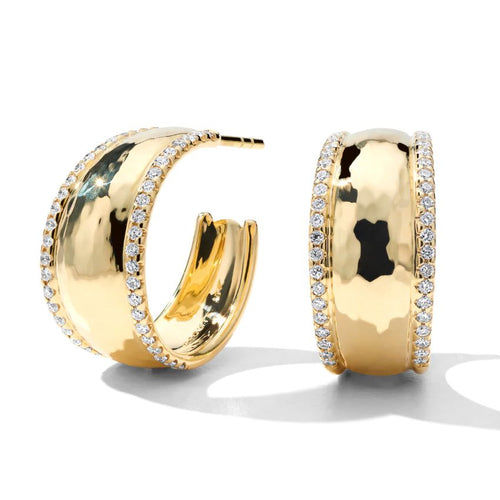 18K Yellow Gold with Diamonds=0.63 CTTW, Hammered Finish, Length: 0.7" Width: 0.6"
