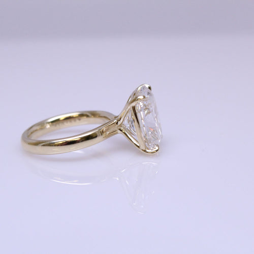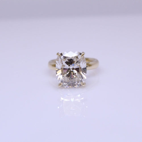 18K Yellow Gold, with 8.07 CT Cushion Head, Plain Support Bars, Size 6.5