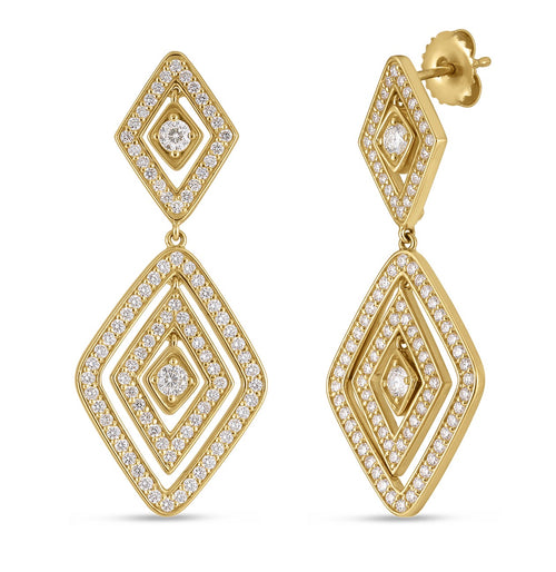 18K Yellow Gold with Diamonds=1.96 CTTW, G-H Color, SI Clarity, Posts and Butterfly Backs, Length=1.75 Inches