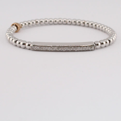 18K White and Rose Gold with Diamonds Pave Set=0.28 CTTW, G Color, VS Clarity, and 4 MM Beads, Made in Italy