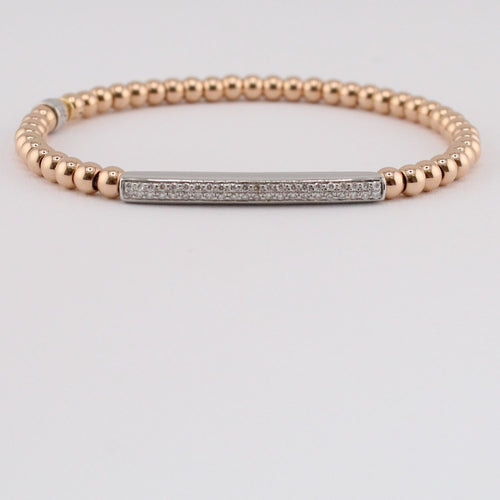 18K Rose and White Gold with Diamonds Pave Set=0.28 CTTW, G Color, VS Clarity, and 4 MM Beads, Made in Italy