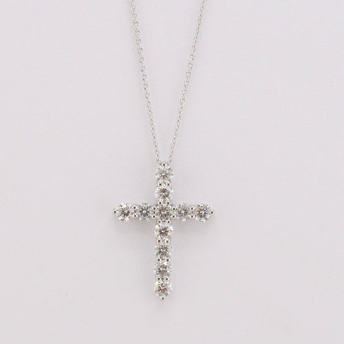 14K White Gold with 11 Diamonds=1.78 CTTW, Fine Belgium Cut, 3.4 MM, Shared Prong Set, Pendant Measures 1" x 3/4", Chain Length=16-18"