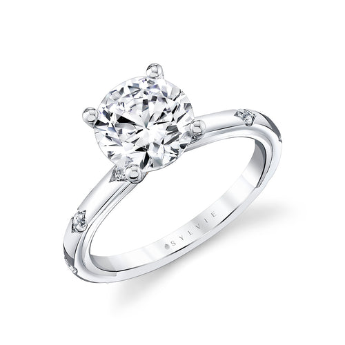 14K White Gold for a 2.0 CT Brilliant Round Center Diamond with Eight Diamonds=0.14 CTTW, Flush Set in the Shoulders