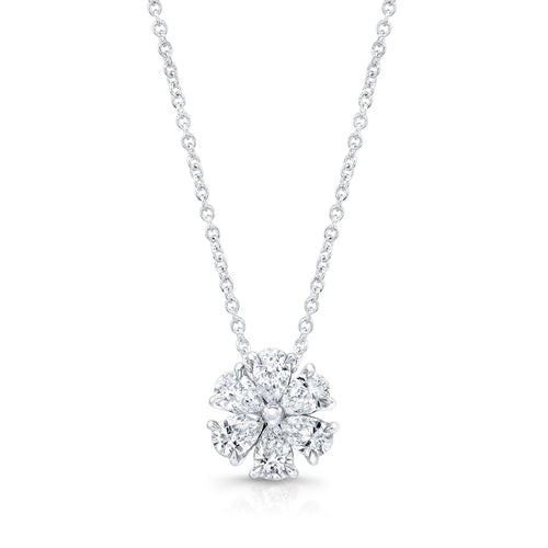 18K White Gold with Six Pear Cut Diamonds=2.54 CTTW, F-G Color, VS-SI Clarity, Pendant Diameter=9/16", Chain is Adjustable 16-18 Inches