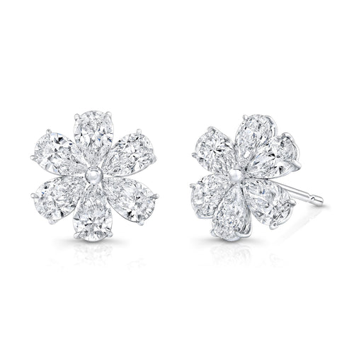 18K White Gold with 12 Pear Cut Diamonds=5.64 CTTW, F-G Color, VS-SI Clarity, Diameter=1 1/8", Jumbo Friction Backs