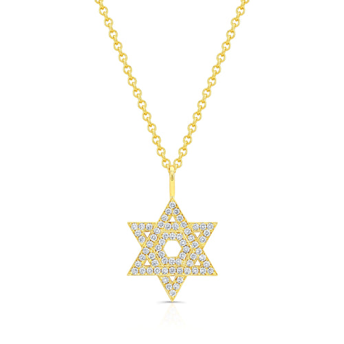 18K Yellow Gold with 63 Diamonds=0.41 CTTW, F-G Color, VS-SI Clarity, Pendant Measures 3/4", Chain Length=16"