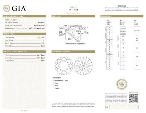 E-VS1 GIA #14179946 G /V.G./V.G.