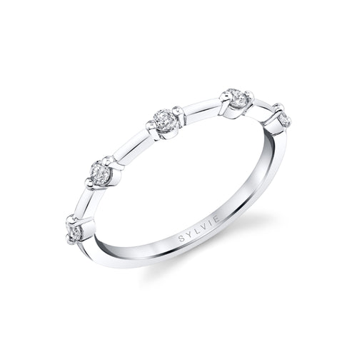 14K White Gold with Five Round Diamonds=0.15 CTTW, Set with Single Prongs
