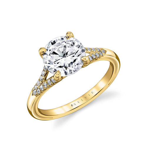 14K Yellow Gold for a 2.0 CT Oval Center, with Thirty Round Diamonds=0.12 CTTW along the tapered edges, Size 6.5