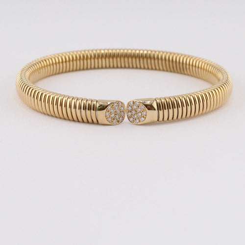18K Yellow Gold, with Diamonds=0.20 CTTW, Pave Set, Bracelet Width=1/4", Made in Italy