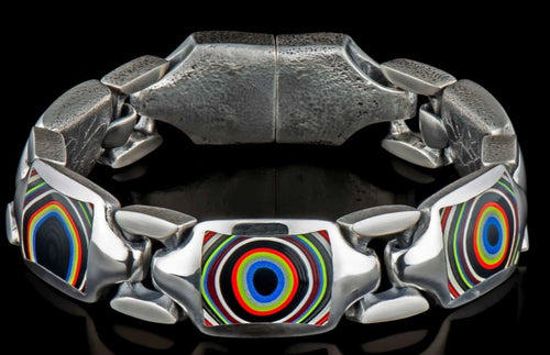 Sterling Silver, with Fordite (aka 'Motor City Agate'), Kashmir Blue Topaz, Stainless Lock Clasp