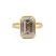 18K Yellow Gold with One Emerald Cut Diamond=5.26 CTS I Color, SI-1 Clarity, GIA #2225156992, Illusion Bezel Set, Finger Size 6.5