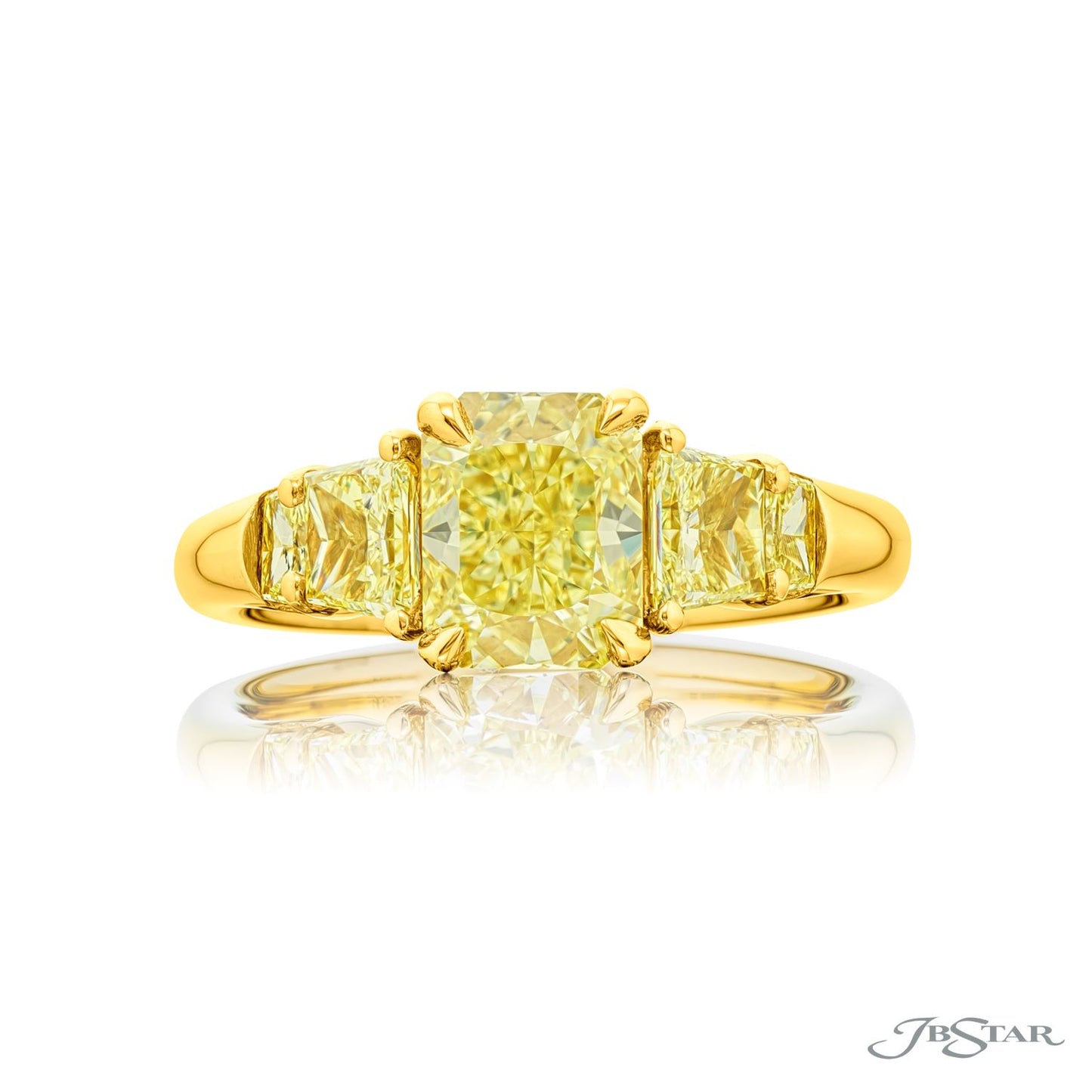 18K Yellow Gold with Radiant Cut Fancy Yellow Center Diamond=1.64 CTS, FY Color, VS-1 Clarity, GIA Certificate #5181913443, and Four Fancy Yellow Trapezoid Cut Graduated Side Diamonds=1.12 CTS, Diamond Total Weight=2.76 CTTW, Finger Size 6.25