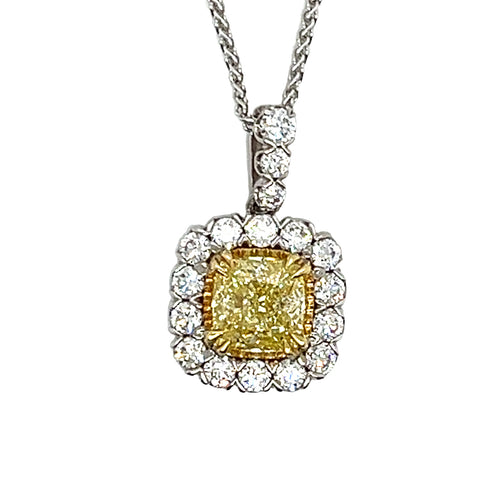 GIA Natural Fancy Intense Yellow Diamond with White Diamond Halo Pendant