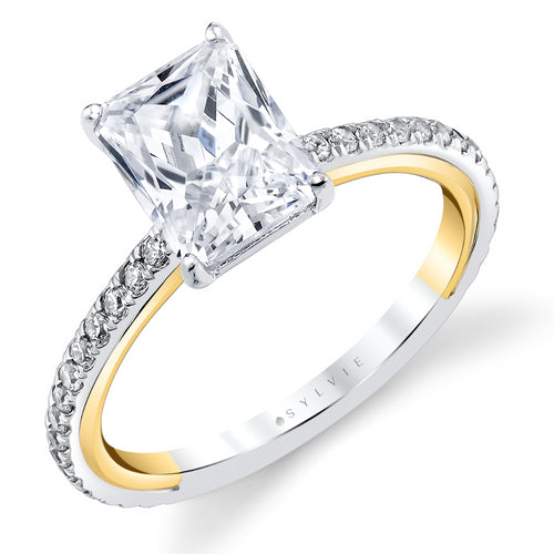 14K White and Yellow Gold for a 3 CT Radiant Cut Center, with Diamond Shoulders, 34 Diamonds=0.30 CTTW, with Shell Iconelle Inlay