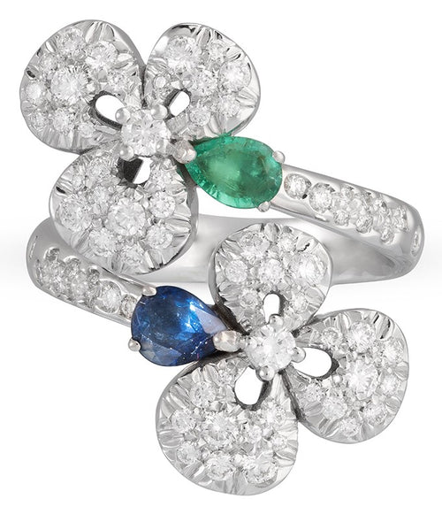 Ischia Collection Emerald, Blue Sapphire & Diamond Bypass Ring
