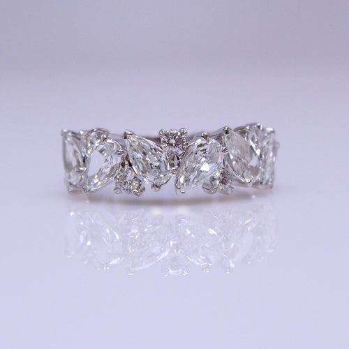 18K White Gold with Six Pear Crisscut Diamonds=1.21 CTS and Seven Round Crisscut Diamonds=0.37 CTS, Diamond Total Weight=1.58 CTTW, E Color, VS Clarity