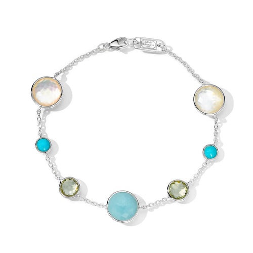 Sterling Silver in Brezza, with Blue Quartz, Turquoise, Prasiolite, Rock Crystal, and Mother-of-Pearl Doublet, Size 7"