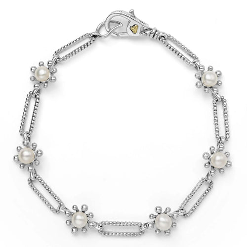 Sterling Silver with Six Pearl Stations, Width 10mm, Pearl Measures 4mm, Size 7