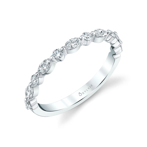 14K White Gold with 11 Marquise and Round Diamonds=0.50 CTTW, Single Prong Set, Size 6.5
