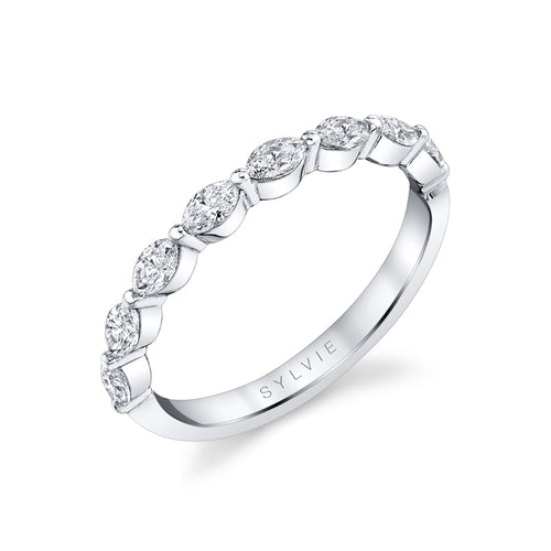 14K White Gold with Eight Marquise Cut Diamonds=0.53 CTTW, Single Prong Set