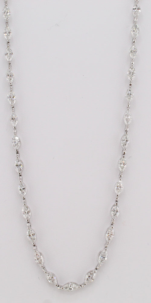 Platinum with 46 Marquise Cut Diamonds=12.11 CTTW, G Color, VS Clarity, Shared Prong Set, Length=17"