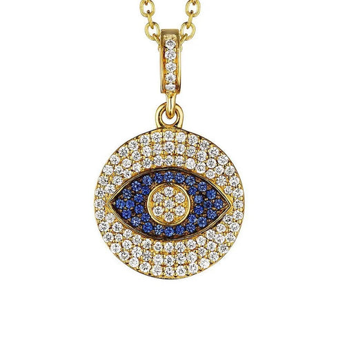 Medallion Collection Diamond & Blue Sapphire Evil Eye Pendant