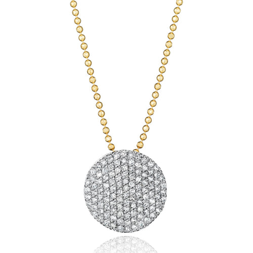 14K Yellow and White Gold with 110 Diamonds=0.57 CTTW, Pave Set, Disc Size=15MM, Chain Length=16-18" Adjustable
